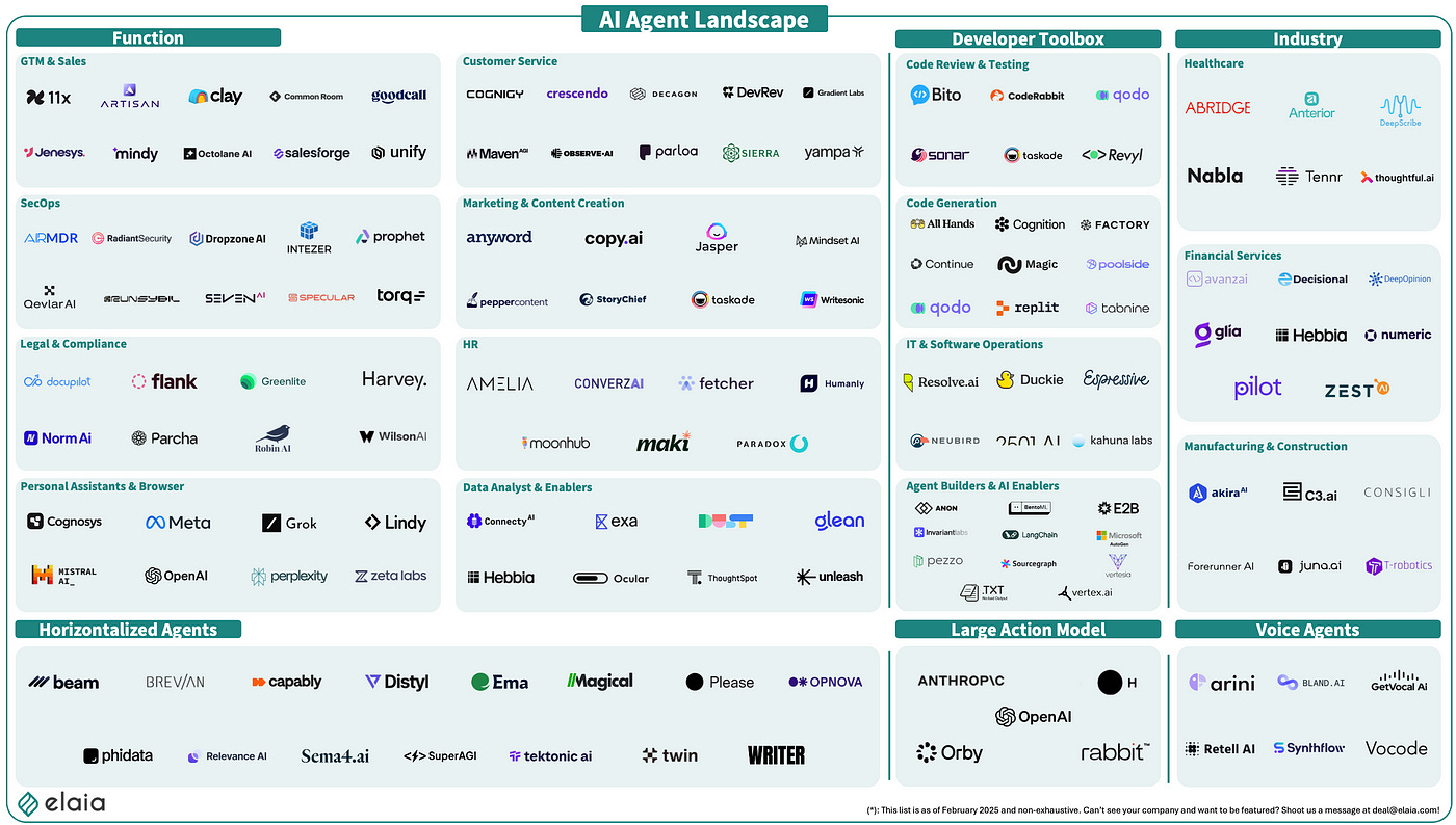 As the AI agent ecosystem matures, we’re witnessing a diverse and rapidly evolving landscape where solutions range from broad, general-purpose AI assistants to highly specialized, verticalized agents.