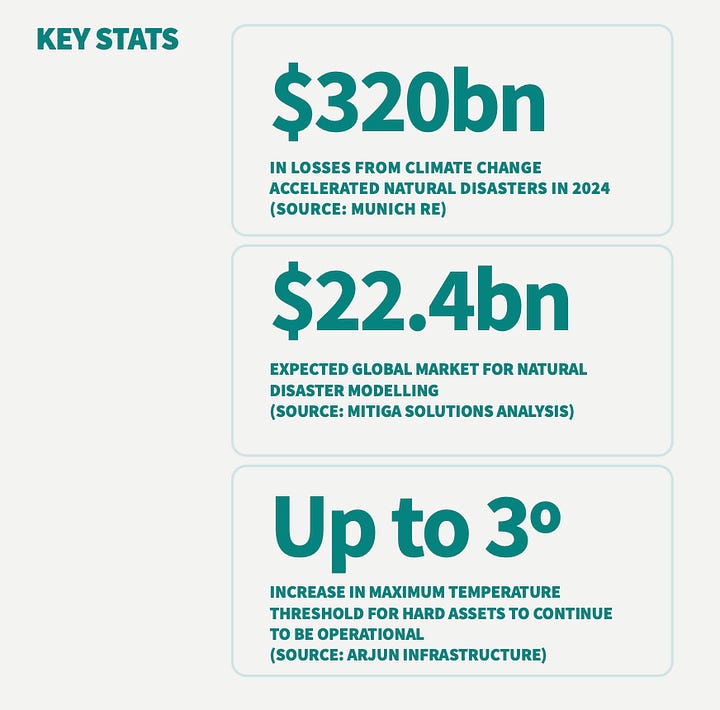 EarthScan is Mitiga’s SaaS platform that lets companies analyse, report and act on their exposure to climate risk. Powered by Mitiga Solutions and built on the latest in climate science and data modelling, EarthScan provides insights across 3 climate scenarios and multiple time horizons. It is used by clients in infrastructure, commercial real estate, and financial services to gain customised insights into their exposure to extreme weather events.